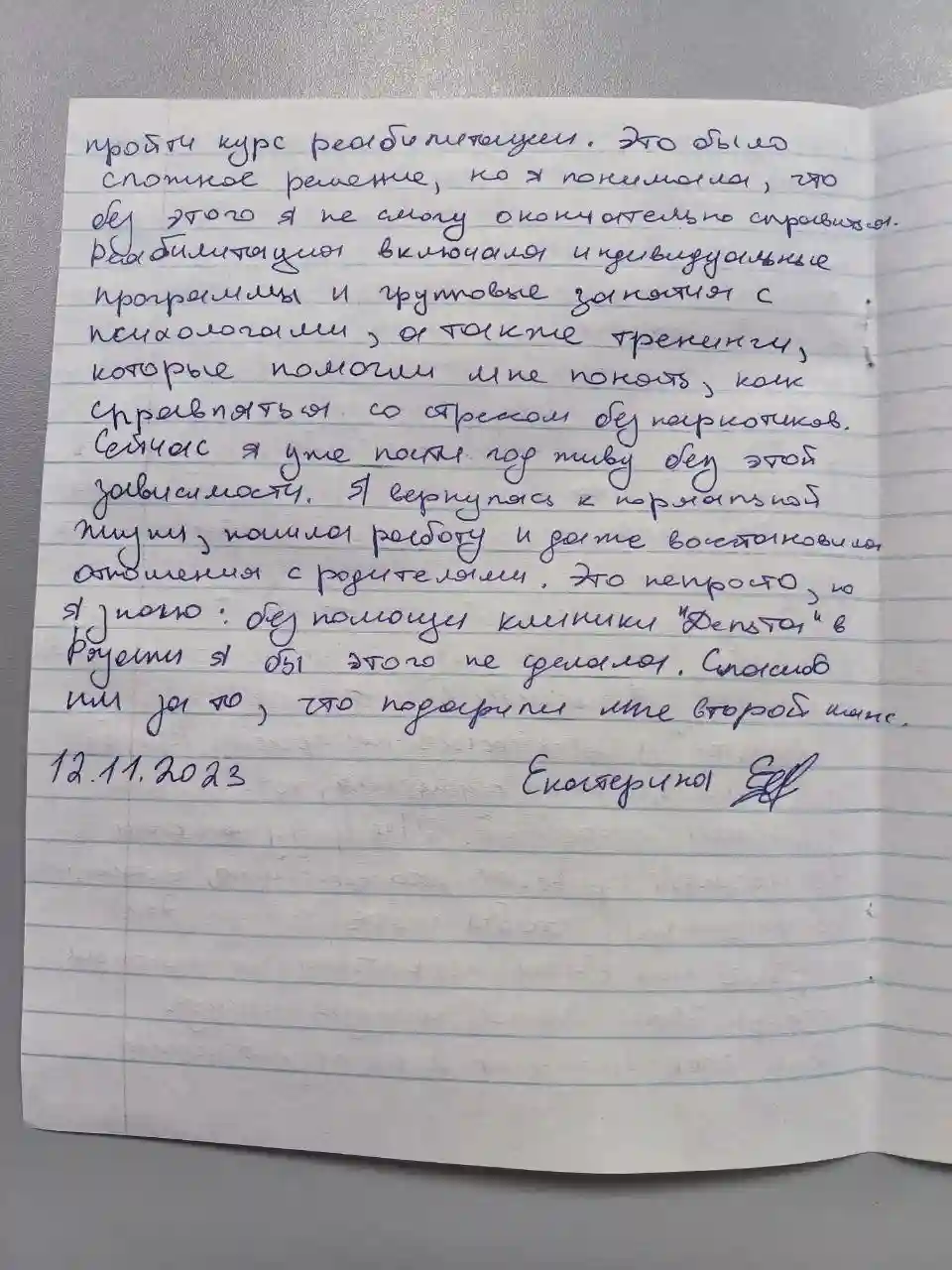 Реабилитация включала индивидуальные и групповые занятия с психологами, а также тренинги, которые помогли мне понять, как справляться со стрессом без наркотиков. Сейчас я уже почти год живу без этой зависимости. Я вернулась к нормальной жизни, нашла работу и даже восстановила отношения с родителями. Это непросто, но я знаю: без помощи клиники "Дельта" в Рязани я бы этого не сделала. Спасибо им за то, что подарили мне второй шанс!